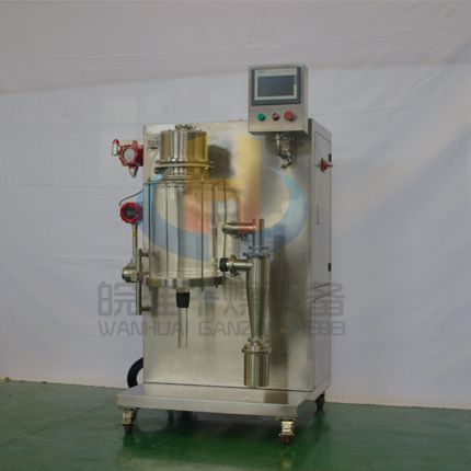 產(chǎn)品展示小型噴霧干燥機主要在科研階段對溶液或流體樣品進(jìn)行噴霧干燥成粉或微小顆粒。其原理是通過霧化器將樣品霧化成微細(xì)霧滴,進(jìn)入干燥室內(nèi)進(jìn)行熱交換,水份瞬間蒸發(fā),固體經(jīng)過旋風(fēng)分離器進(jìn)行回收,飽和氣體經(jīng)過除塵器過濾后排空,本設(shè)備可應(yīng)用于從試驗室到一般研究室的噴霧干燥作業(yè),在食品醫(yī)藥化工行業(yè)均可良好的應(yīng)用。
